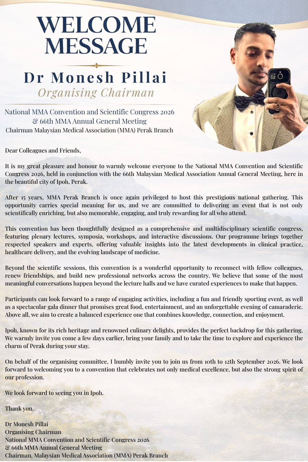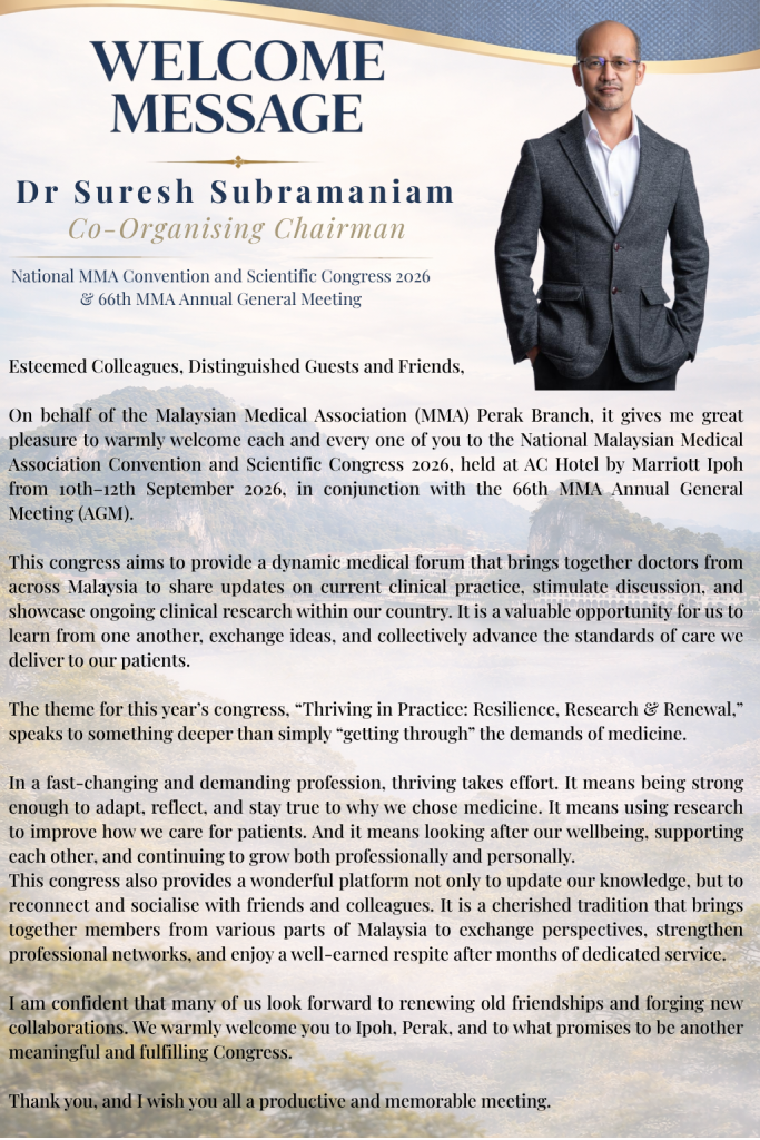 MMA Perak Branch is honoured to host the National MMA Convention and Scientific Congress 2026, alongside the 66th MMA Annual General Meeting in Perak
